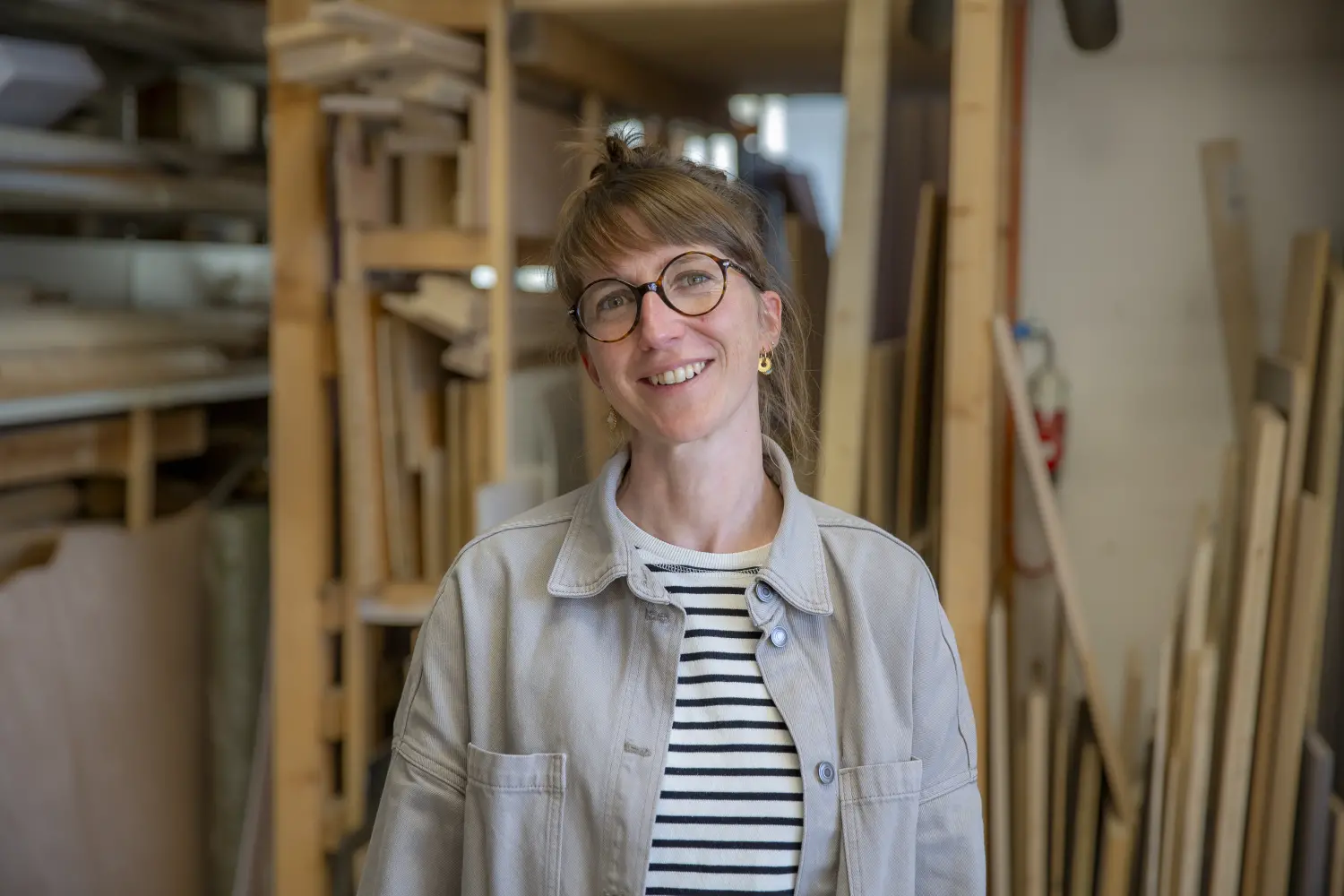 "Après le collège, j'ai fait des stages pour savoir ce que je voulais faire. Et puis j'ai fait des stages dans le théâtre, comme constructrice, comme stagiaire constructrice. Et puis j'ai découvert que c'était un métier qui était extrêmement diversifié et qui nourrissait énormément ma curiosité, dans les matériaux et tout ça. Et donc j'ai appris après que ça s'appelait être scénographe. Et donc après, j'ai fait une école à Bruxelles, La Cambre, dans laquelle il y a un atelier de scéno, mais il y a aussi une vingtaine d'autres disciplines artistiques. Parce qu'à l'époque, en fait, il n’y avait pas encore de formation en Suisse. Donc j'avais le choix entre la France et la Belgique et je ne connaissais pas la Belgique. Donc je suis partie à Bruxelles."